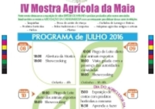 A IV Mostra Agrícola da Maia realiza-se nos dias 8, 9, 10 e 11 de julho, no espaço da Feira do Mercado da Maia.