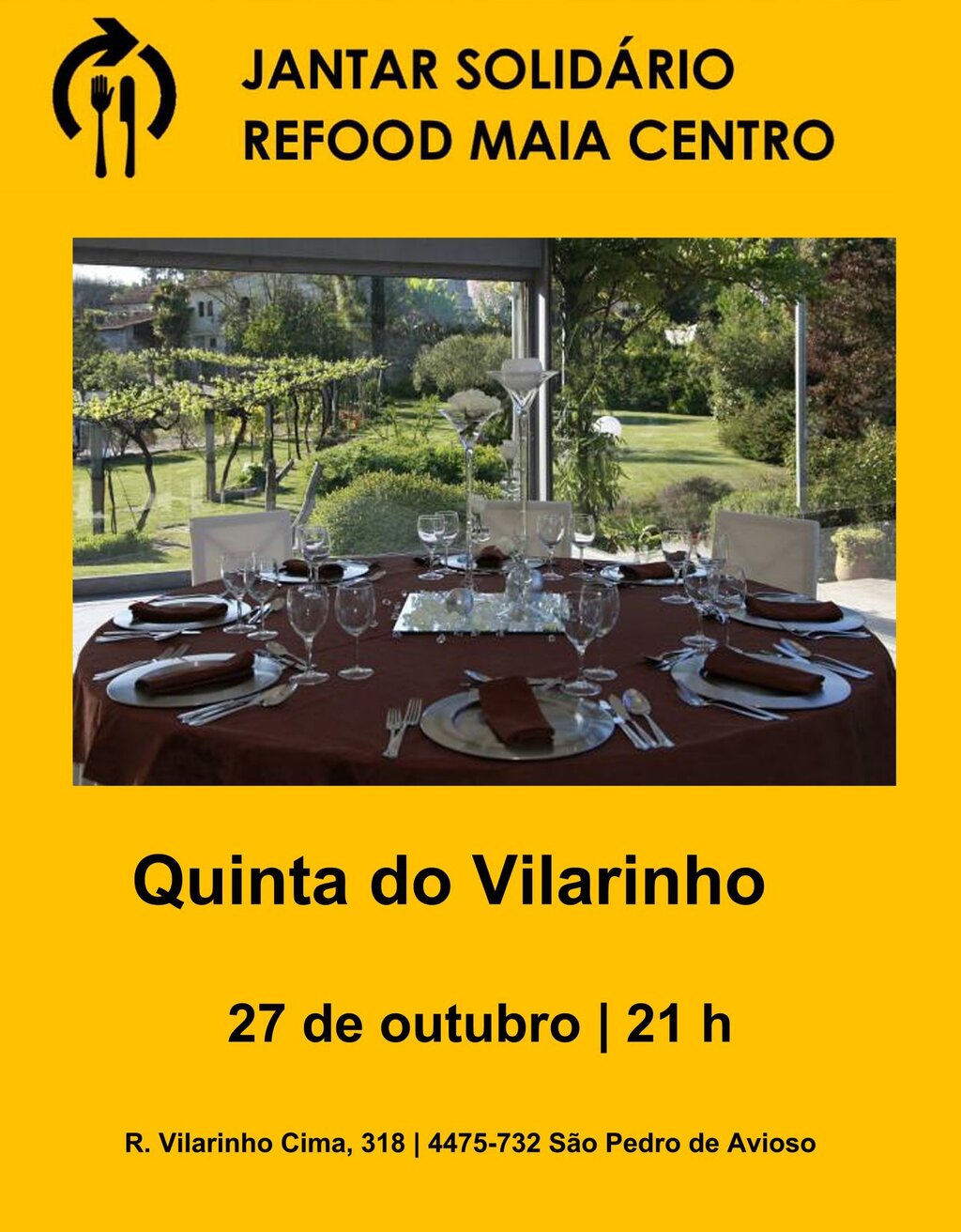 A Refood Maia Centro realizou um “Jantar de Solidariedade”, com vista à angariação de fundos, no passado dia 27 de outubro, pelas 21h, na Quinta do Vilarinho (Avioso São Pedro, Castêlo da Maia).