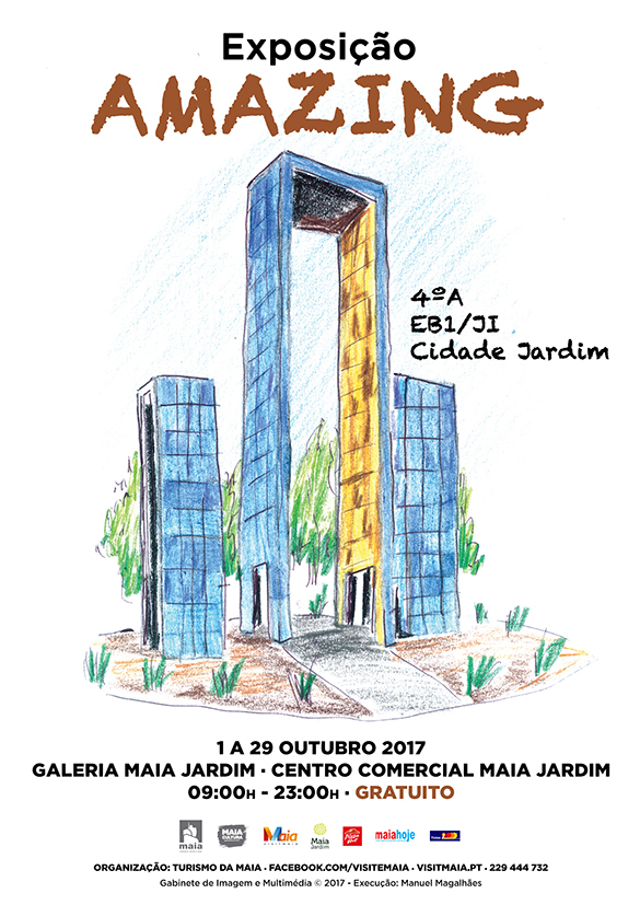 De 1 a 29 de outubro estará patente no Centro Comercial Maia Jardim uma exposição temporária intitulada " Amazing 4ºA " da autoria dos alunos do 4ºA da EB1/JI Cidade Jardim, a realizar de 1 a 29 de outubro.
