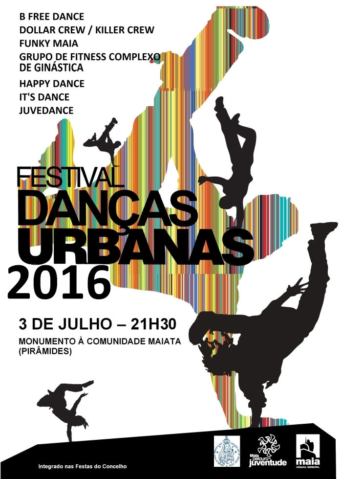 O Festival de Danças atinge este ano a 11ª edição, promovendo continuamente a expansão artística da dança urbana, fortemente implementada nos movimentos juvenis da atualidade. Estarão envolvidos no evento mais de 200 dançarinos de oito grupos de dança: B Free Dance, Dollar Crew, Killer Crew, Funky Maia, Grupo de Fitness Complexo de Ginástica, Happy Dance, It’s Dance e Juvedance.