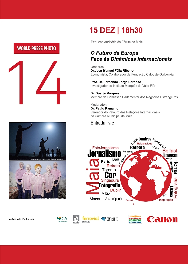 Associada à mais conceituada exposição de fotojornalismo do mundo, o World Press Photo, o Pequeno Auditório do Fórum da Maia vai receber no dia 15 de dezembro uma conferência subordinada ao tema: O Futuro da Europa Face às Dinâmicas Internacionais.