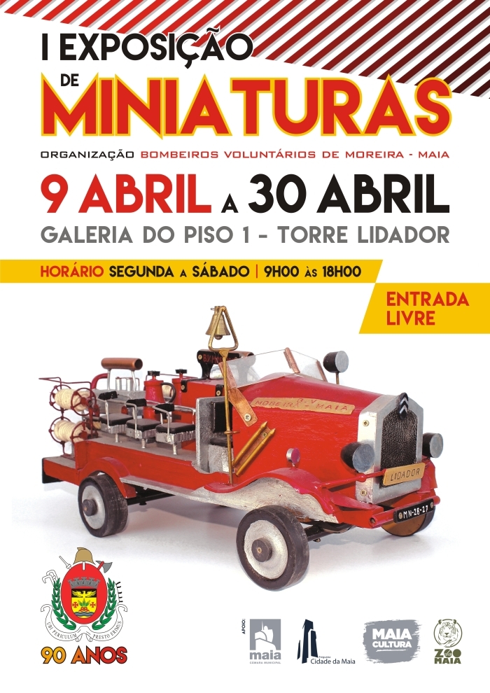 De 9 a 30 de abril, a Associação Humanitária dos Bombeiros Voluntários de Moreira da Maia organiza uma exposição de miniaturas, no âmbito das comemorações dos seus 90 anos de existência.