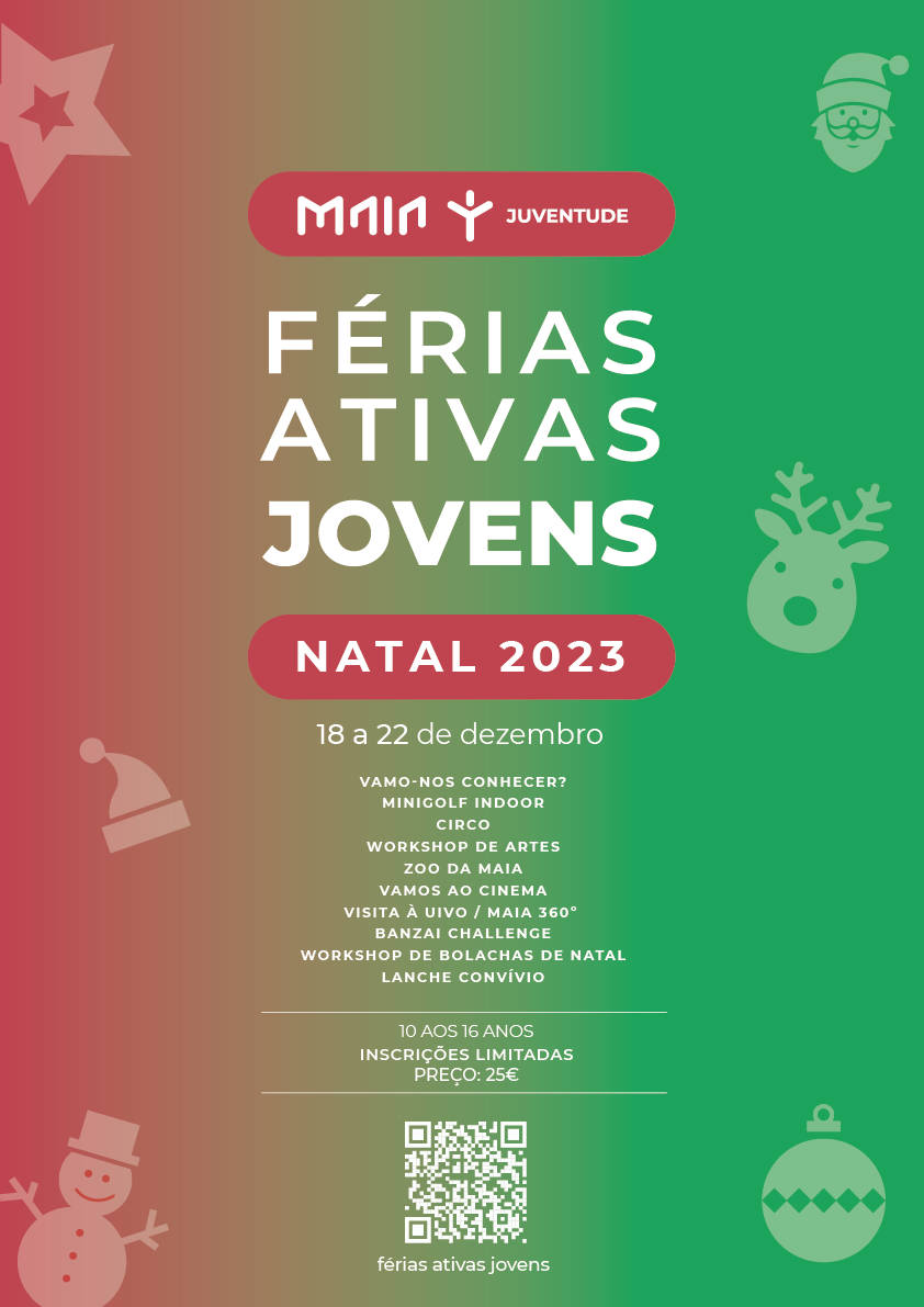 O programa Férias Ativas Jovens destina-se a jovens entre os 10 e os 16 anos de idade e decorrerá no Fórum Jovem da Maia de 18 a 22 de dezembro.