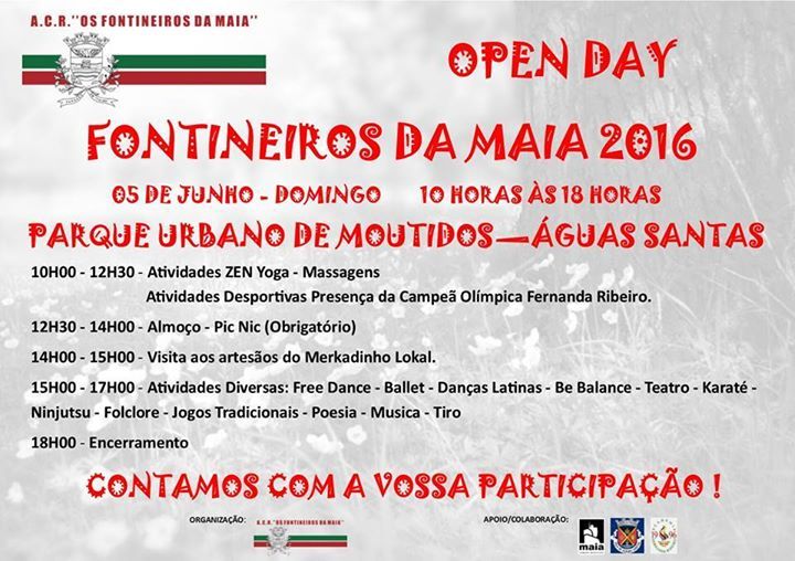 Os A.C.R. Fontineiros da Maia vão realizar um Open Day, no dia 5 de junho (domingo), entre as 10h e as 18h, no Parque Urbano de Moutidos (Águas Santas, Maia).