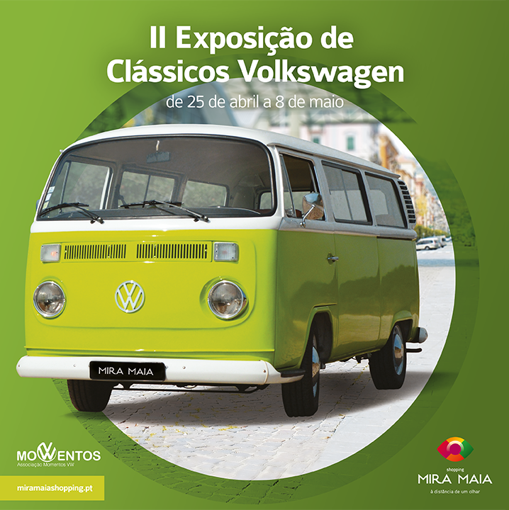 O Clube Momentos VW promove de 25 de abril a 8 de maio a II Exposição de Clássicos da Volkswagen, no espaço do Mira Maia Shopping.