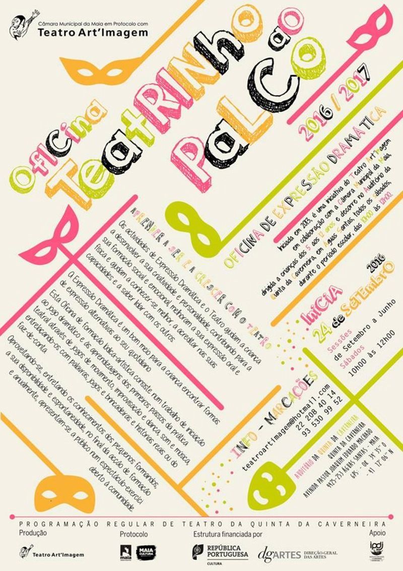 Iniciada em 2013, a iniciativa do Teatro Art´Imagem em colaboração com a Câmara Municipal da Maia, é dirigida a crianças dos 5 aos 12 anos. Esta Oficina de formação lúdica-artística consiste num trabalho de iniciação ao jogo dramático e às aprendizagens dos primeiros passos da prática teatral através de jogos de movimento, improvisação e dança, som e música, entrelaçando-os com palavras, jogos e brincadeiras e histórias reais ou do faz-de-conta.