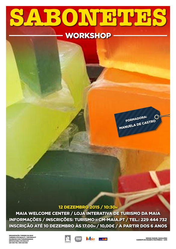 Irá realizar-se, no dia 12 de dezembro, das 10h30 às 12h30, no Maia Welcome Center / Loja Interativa de Turismo da Maia, o workshop dedicado ao fabrico artesanal de Sabonetes.