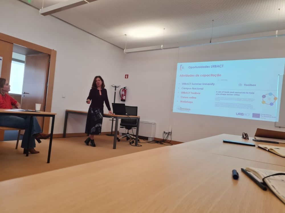 A sessão visou dar a conhecer aos presentes, os objetivos e oportunidades de financiamento no âmbito do Programa URBACT, o percurso e os marcos já atingidos na implementação deste projeto (ações em curso e os próximos passos a dar) e a identificação de desafios para aplicação de soluções inovadoras relacionadas com o tema, mediante o emprego de metodologias participativas.