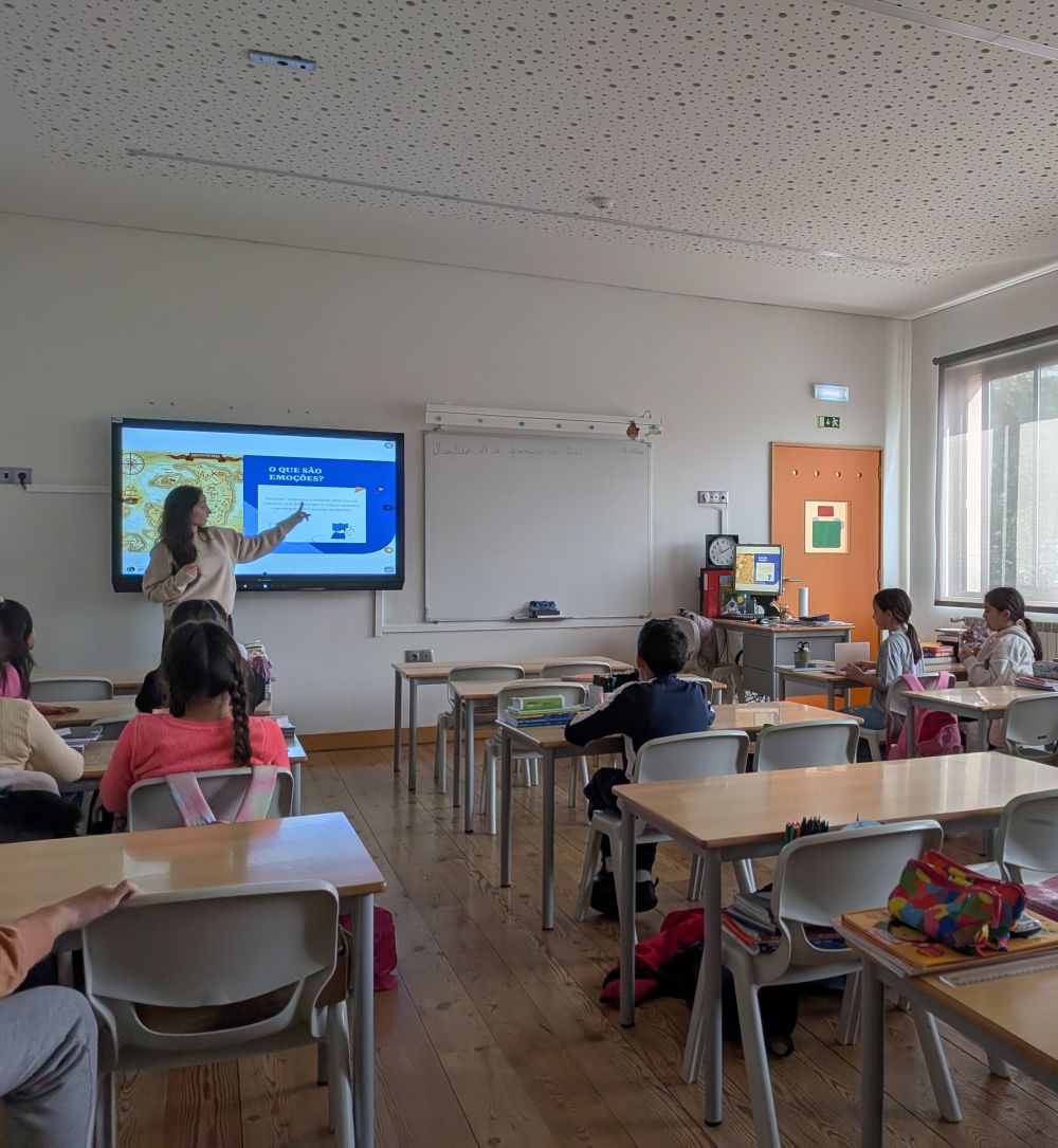 Num ambiente participativo e acolhedor, as crianças revelaram grande interesse e capacidade de compreensão, terminando a sessão mais conscientes, tranquilas e capazes de reconhecer melhor as suas emoções no dia-a-dia.