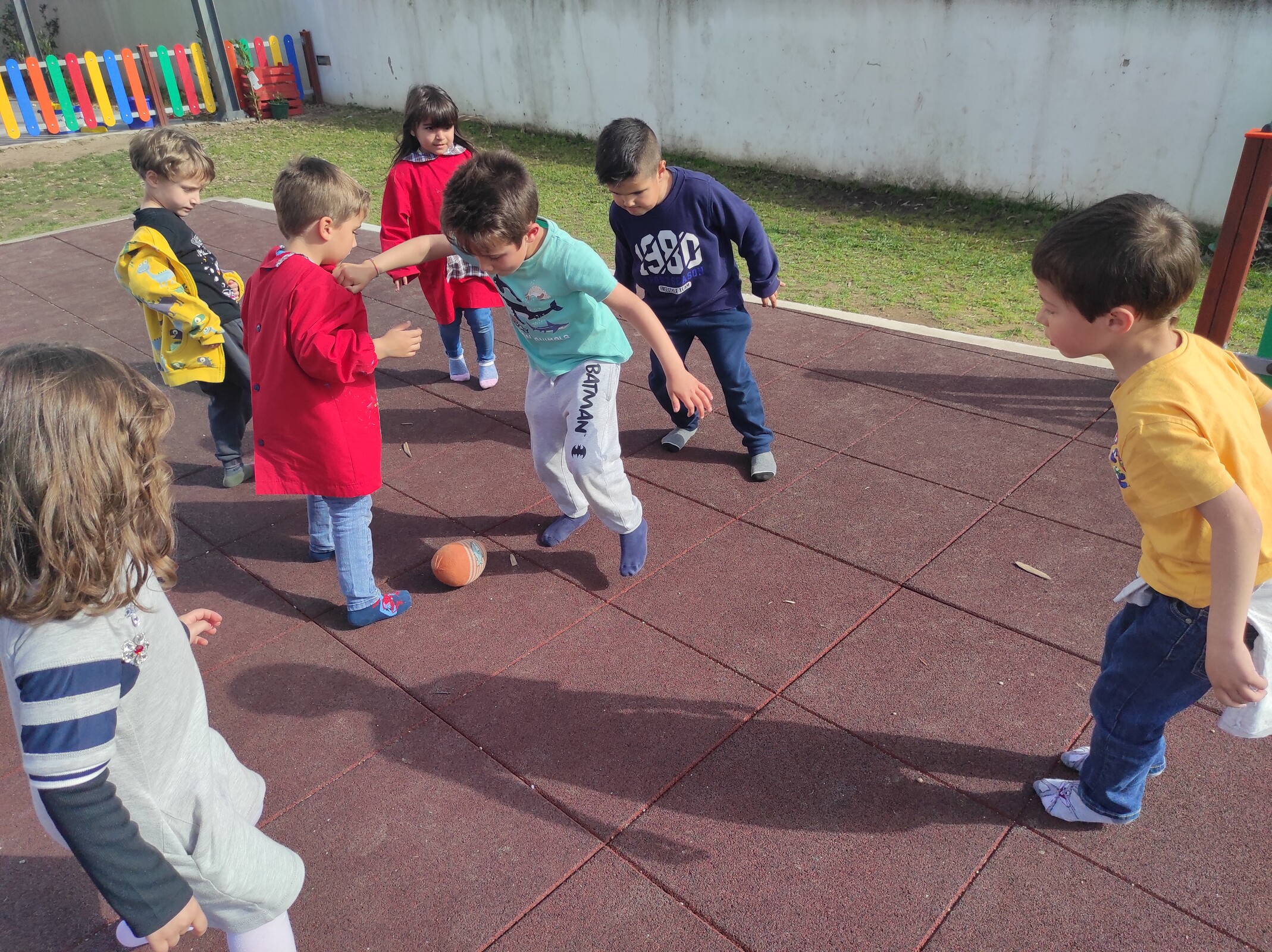 Nas suas palavras “Tradicionalmente, a bola com que se brincava era feita de tecidos velhos e meias rotas. Também era comum as crianças brincarem na rua descalças. Assim, aproveitando o bom tempo, fizemos jogos com a bola de trapos, descalços, no nosso parque infantil. Sempre bem dispostos e muito divertidos brincamos como antigamente.”