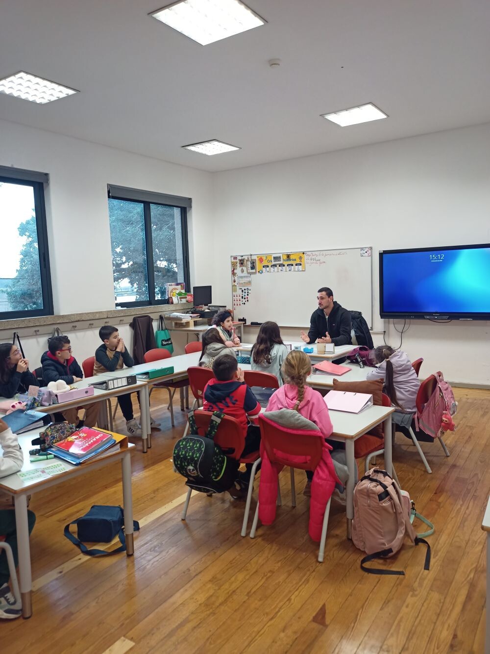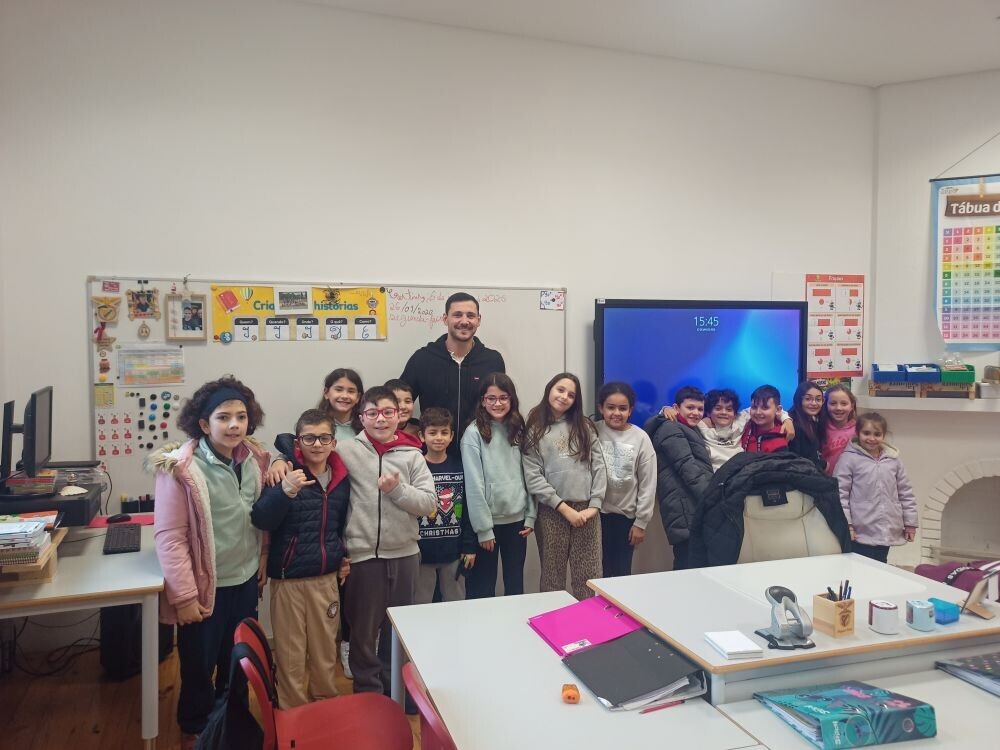 Os alunos do 3.º e do 4.º ano da EB de Crestins receberam Pedro Portela, jogador de andebol do Águas Santas e da Seleção Nacional, no âmbito da AEC de Atividade Física e Desportiva.