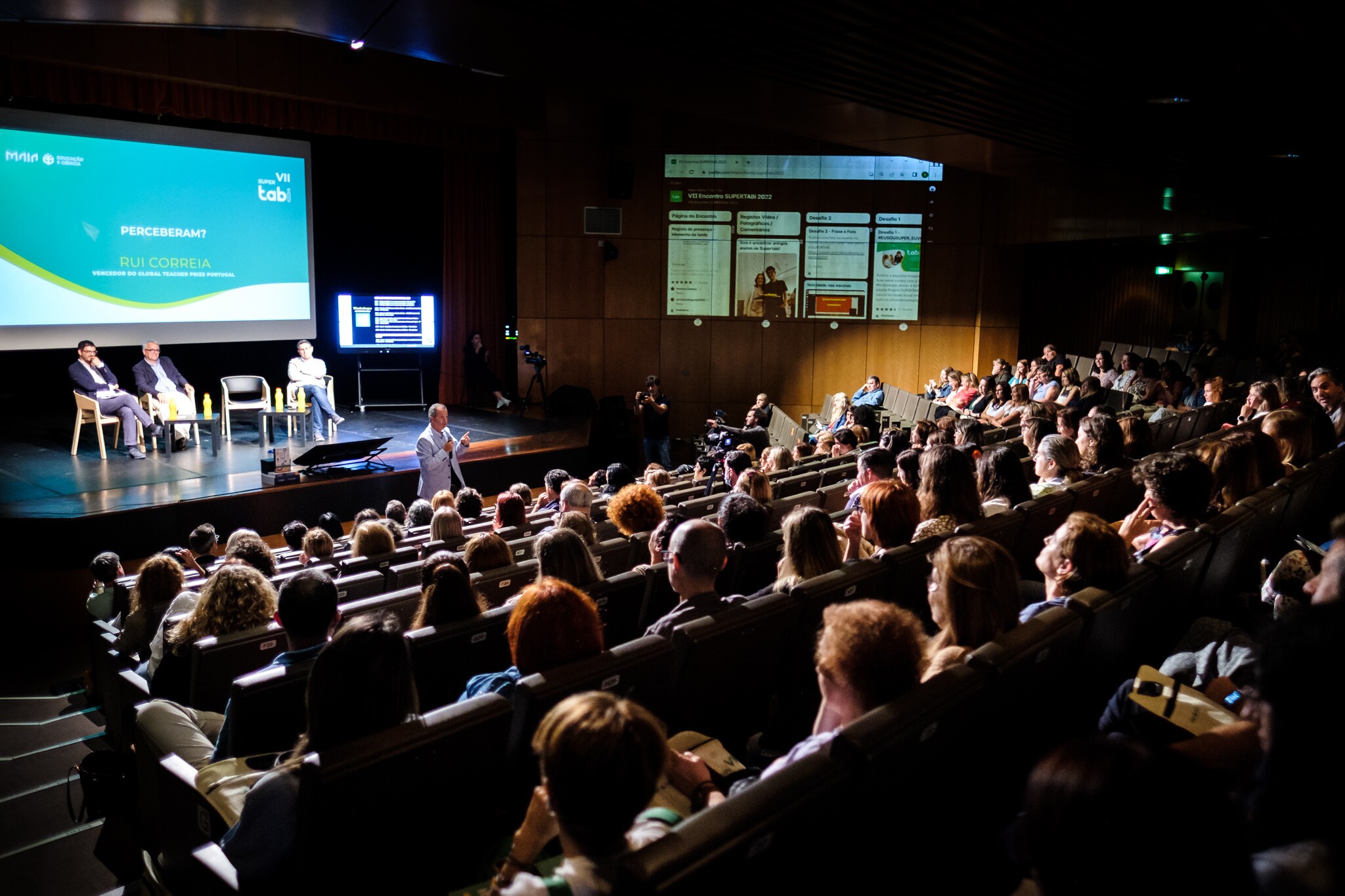 O grande auditório do Fórum da Maia recebeu o VII Encontro Internacional SUPERTABi. O evento sobre inovação pedagógica decorreu em regime híbrido, certificado e gratuito, e contou com a participação de mais de 1000 pessoas.