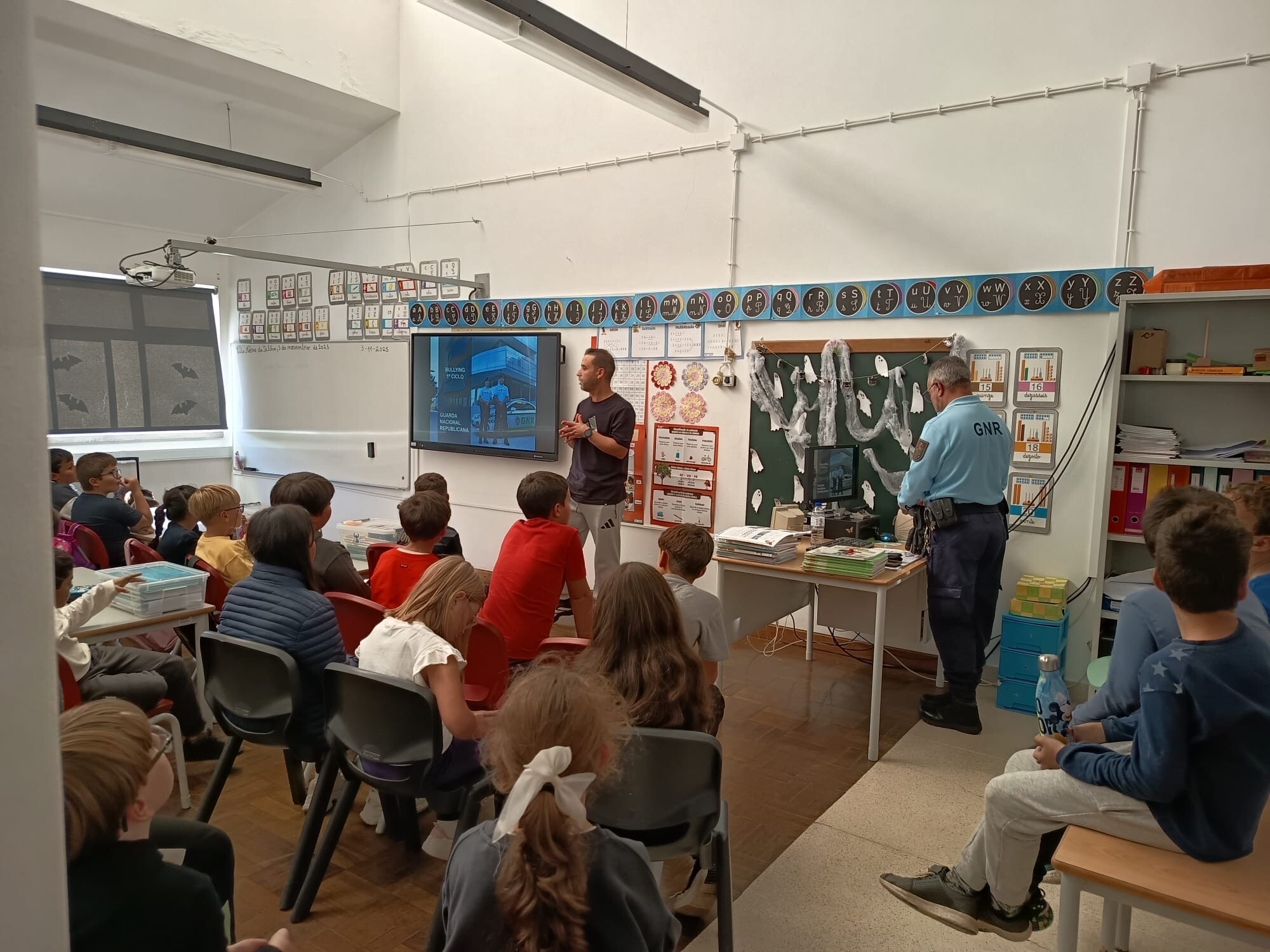 A EB do Lidador recebeu a visita de dois militares da GNR para dinamizar uma palestra com o tema “O Bullying não é brincadeira”, dirigida aos alunos do 3º e 4º ano de escolaridade.