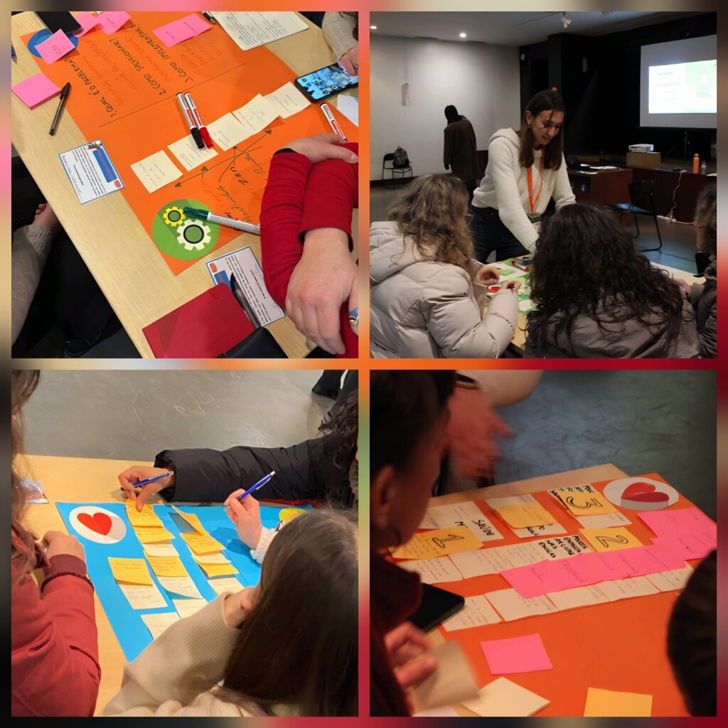 Durante duas manhãs, os participantes vivenciaram na prática o Design Thinking, percorrendo os quatro passos da metodologia DFC -Sente, Imagina, Faz e Partilha- e desenvolvendo competências de empatia, criatividade, definição de estratégias e trabalho colaborativo.