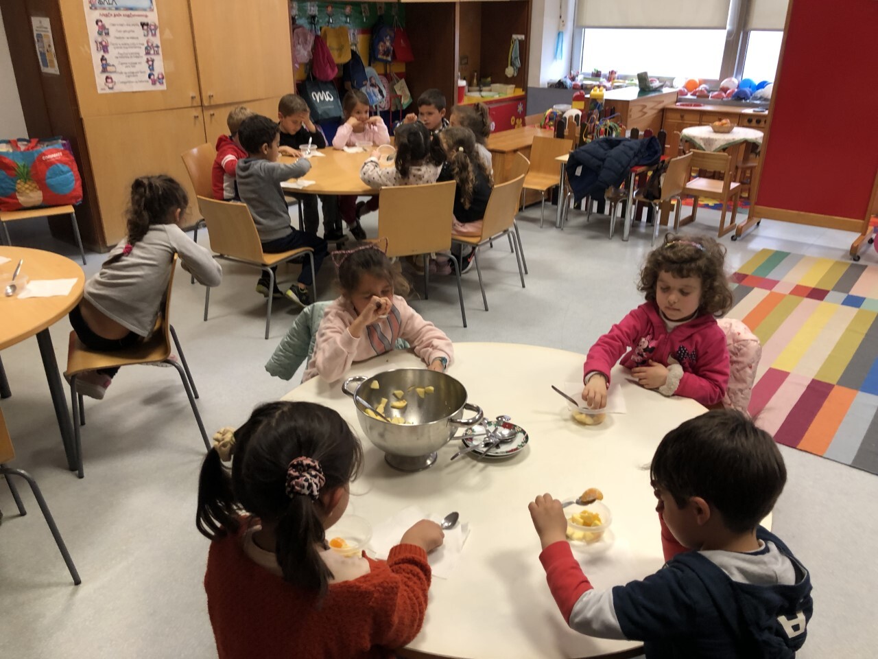 Na escola básica D. Manuel II a animadora Carla Teixeira e o animador Fernando Ernesto dinamizaram uma atividade do módulo PlenaMente em que as crianças foram convidadas a degustar alguns frutos.