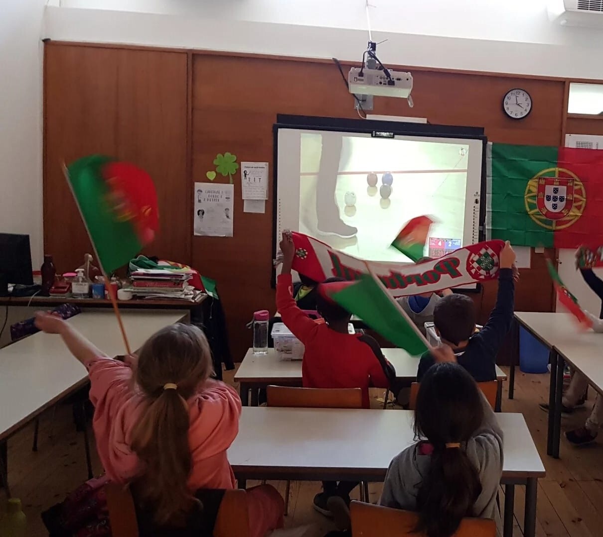 Um momento único em que as crianças acompanharam cada momento e durante o jogo realizaram desenhos com mensagens de apoio aos/às atletas da Seleção Nacional. Os mesmos serão compilados e entregue aos atletas: Abílio Valente, André Ramos e Cristina Gonçalves, em forma de livro como agradecimento por representarem com excelência o nosso país!